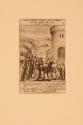 DescriptionBoxes of text take up the top and bottom of the image. The graphics reveal a crowd of people behind a coffin with a woman sitting alive upright on it as a man with light surrounding his head extends his right arm towards her. To the right a large structure towers above. In the distance a town rests to the left.On View